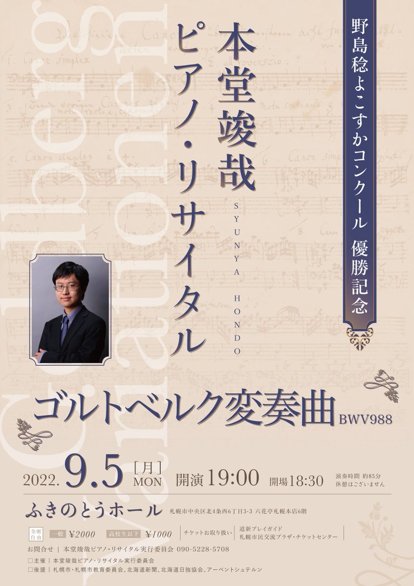 野島稔よこすかコンクール 優勝記念 本堂竣哉 ピアノリサイタル |
